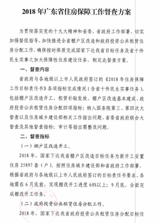 2018年廣東省住房保障工作督查方案