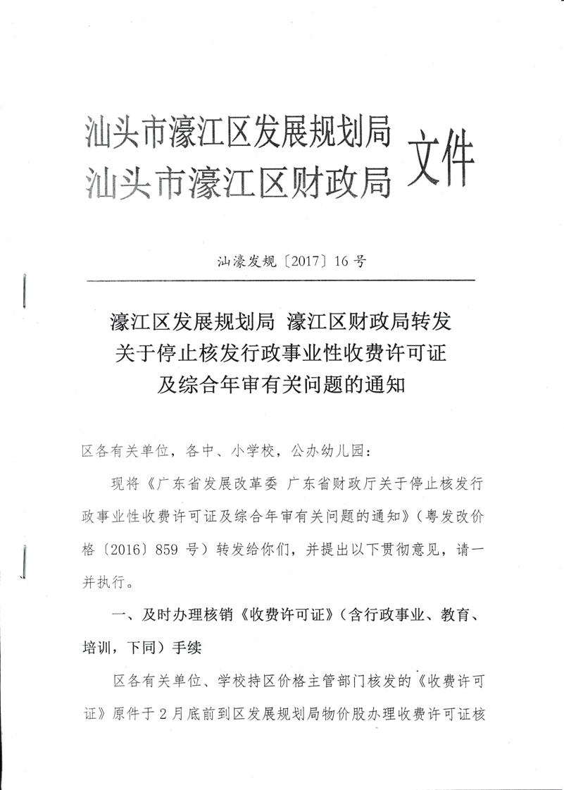 汕市發改[2017]48號汕頭市發展和改革局 汕頭市財政局轉發關于停止核發行政事業性收費許可證及綜合年審有關問題的通知.doc