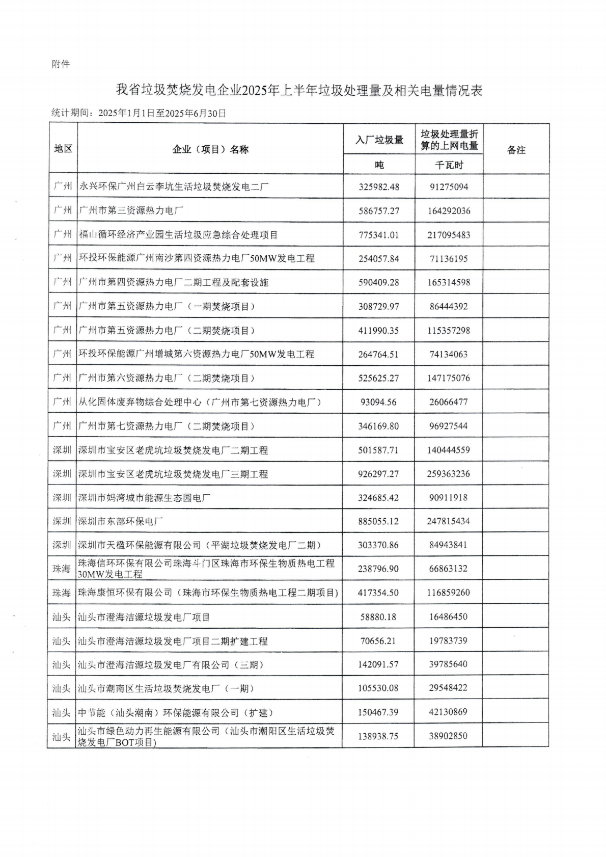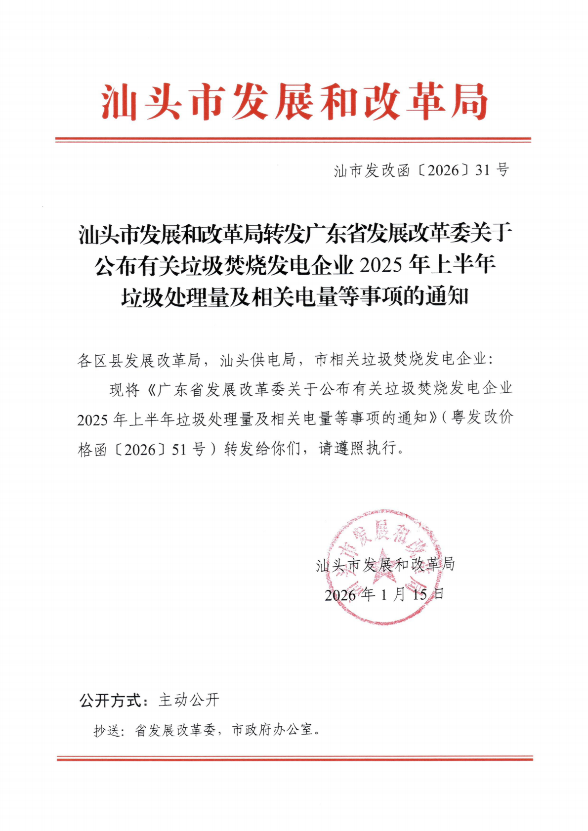 汕頭市發展和改革局轉發廣東省發展改革委關于公布有關垃圾焚燒發電企業2025年上半年垃圾處理量及相關電量等事項的通知