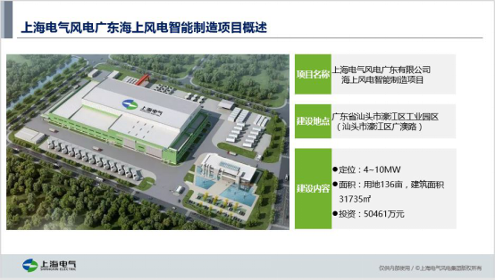 上海電氣風電廣東有限公司海上風電智能制造項目于2017年11月正式落戶汕頭市濠江區廣澳物流園區。該項目占地面積136畝,計劃投資5億元,生產4-10MW海上風電機組,計劃產能150臺至200臺,預計年產值60億元至100億元。本著“立足汕頭、面向全國、輻射全球”的經營思路,將著力打造成為汕頭市、廣東省智能制造的新名片。