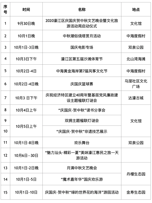 2020濠江區(qū)國(guó)慶中秋文化旅游活動(dòng)周系列活動(dòng)節(jié)目表