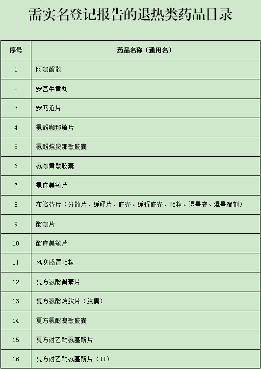 近日,根據(jù)省疫情防控指揮部辦公室要求,廣東省藥品監(jiān)管局組織相關(guān)醫(yī)療專家對新型冠狀病毒肺炎用藥品種進(jìn)行梳理,擬定了《需實(shí)名登記報(bào)告的退熱類藥品目錄》。