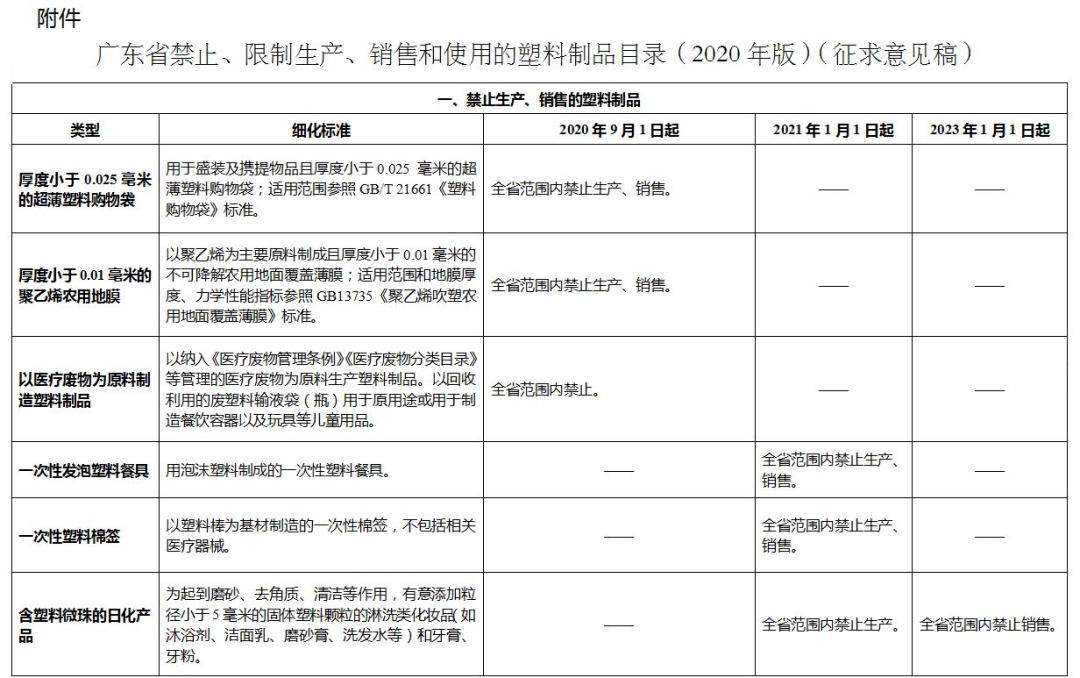 廣東新的塑料限禁令已于9月1日正式實施,21日,廣東省發(fā)展改革委表示,為便于各地執(zhí)行,省發(fā)展改革委、省生態(tài)環(huán)境廳已共同制定《廣東省禁止、限制生產(chǎn)、銷售和使用的塑料制品目錄(2020年版)》,明確了相關(guān)禁限細(xì)化標(biāo)準(zhǔn)、區(qū)域范圍和時間節(jié)點。