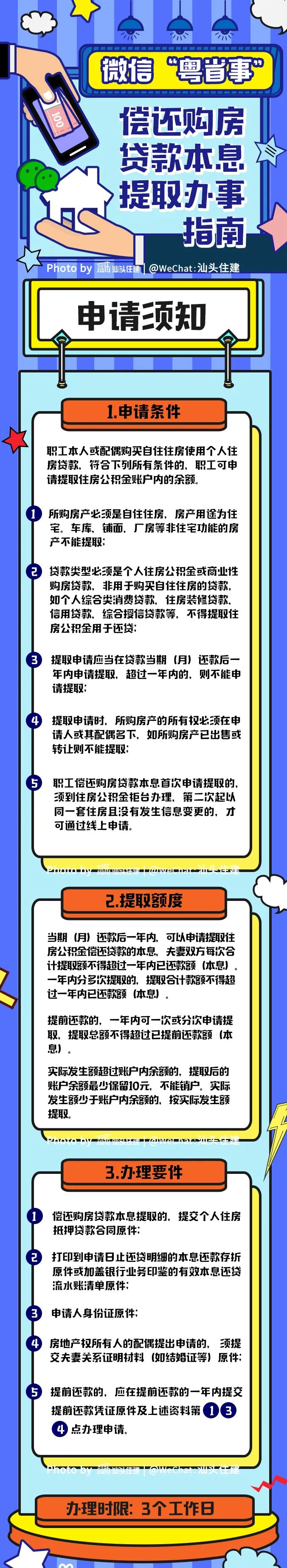 目前,全市住房公積金繳存職工在登錄微信住房公積金小程序或微信“粵省事”平臺后,按提示進行“刷臉”身份識別、填寫申請資料、掃描上傳等操作,購買住房提取、償還購房貸款本息提取、租賃住房提取、離退休提取、終止勞動關系提取等高頻提取類業務即可在網上申請辦理。職工在相關平臺申請后,經我中心審核符合條件的,在規定時限內將資金劃轉到職工本人賬戶。