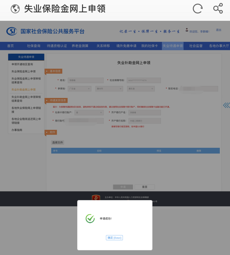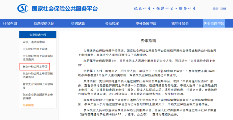 1.國(guó)家社會(huì)保險(xiǎn)公共服務(wù)平臺(tái) -> 失業(yè)待遇申領(lǐng)。
