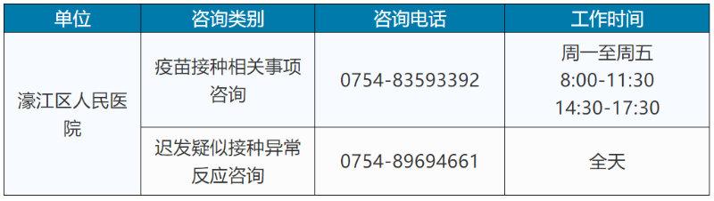 濠江區人民醫院新冠病毒疫苗接種答疑咨詢