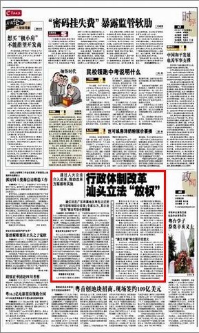 編者按:7月8日,《羊城晚報》刊登《行政體制改革 汕頭立法“放權”》一文,指出:我區在廣東東西兩翼地區率先提出行政體制綜合改革,其中立法“放權”做法在全國范圍內具有重大參考意義。