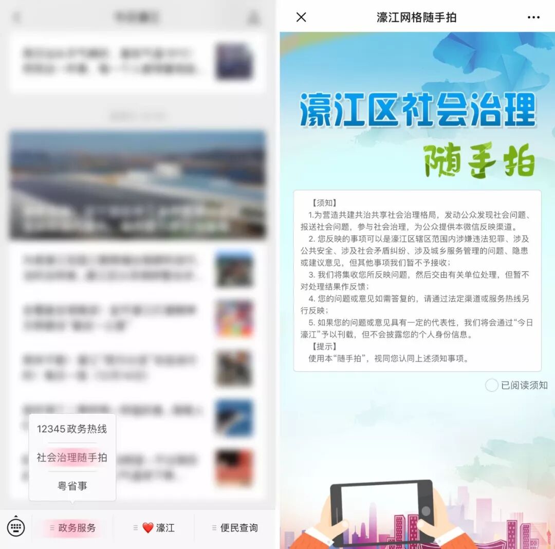 關(guān)注“今日濠江”微信公眾號,在“政務(wù)服務(wù)”欄中選擇點(diǎn)擊“社會治理隨手拍”。