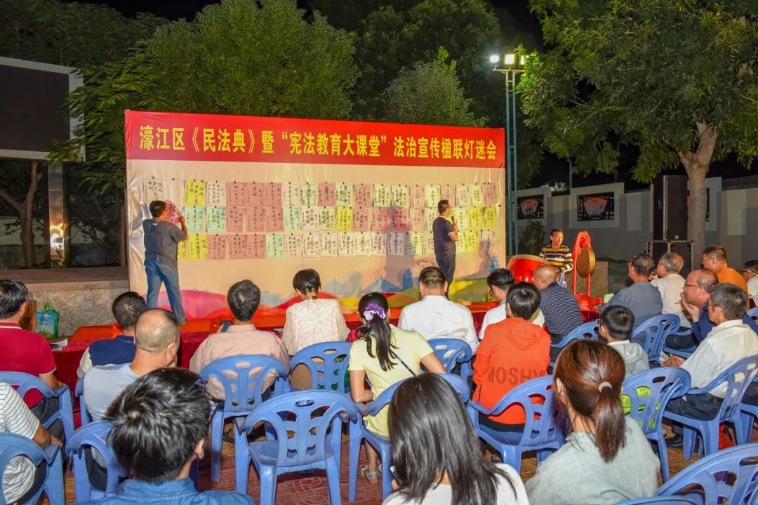 本次活動以群眾喜聞樂見的楹聯燈謎會形式展開,吸引了許多市民踴躍參與,現場的競猜聲此起彼伏。隨著一系列涵蓋《中華人民共和國憲法》、《中華人民共和國民法典》、掃黑除惡、平安創建、敬老愛老等法治知識的楹聯燈謎被紛紛猜中,現場氣氛達到高潮。