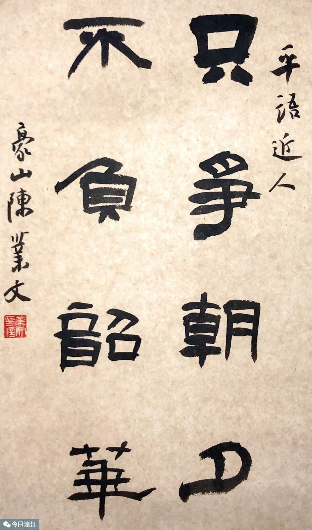 書法家簡(jiǎn)介 陳業(yè)文,濠江區(qū)首批優(yōu)秀拔尖人才,3次榮獲市文藝“精品獎(jiǎng)”,系中國(guó)書法家協(xié)會(huì)書法考級(jí)考官、中國(guó)書法家協(xié)會(huì)會(huì)員、汕頭市書法家協(xié)會(huì)副主席、濠江區(qū)書法協(xié)會(huì)主席。作品曾入展由中國(guó)書法家協(xié)會(huì)主辦的全國(guó)“林散之獎(jiǎng)”、青年展、冊(cè)頁(yè)展、大字展、新人展和榮寶齋全國(guó)展等,曾獲廣東省書法最高獎(jiǎng)“南雅獎(jiǎng)”銀獎(jiǎng)、“群藝獎(jiǎng)”銅獎(jiǎng),并入展十余次。多次參與、策劃全市性書法大展和比賽。