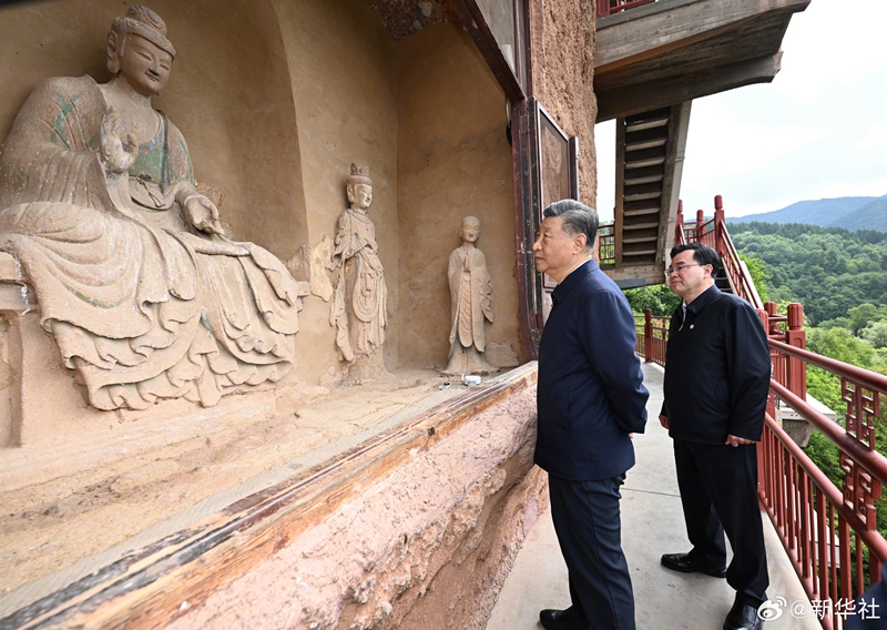 10日下午至11日上午,習近平總書記先后來到陜西省寶雞市和甘肅省天水市考察調研。在寶雞市,習近平考察了寶雞青銅器博物院、渭河生態公園,了解當地加強文物保護利用和開展渭河生態保護治理等情況。在天水市,習近平考察了伏羲廟、麥積區南山花牛蘋果基地、麥積山石窟,了解當地推動文化遺產保護傳承、發展特色現代山地果業等情況。(文字記者:張曉松、朱基釵;攝影記者:鞠鵬、謝環馳、王曄、燕雁、申宏、翟健嵐)